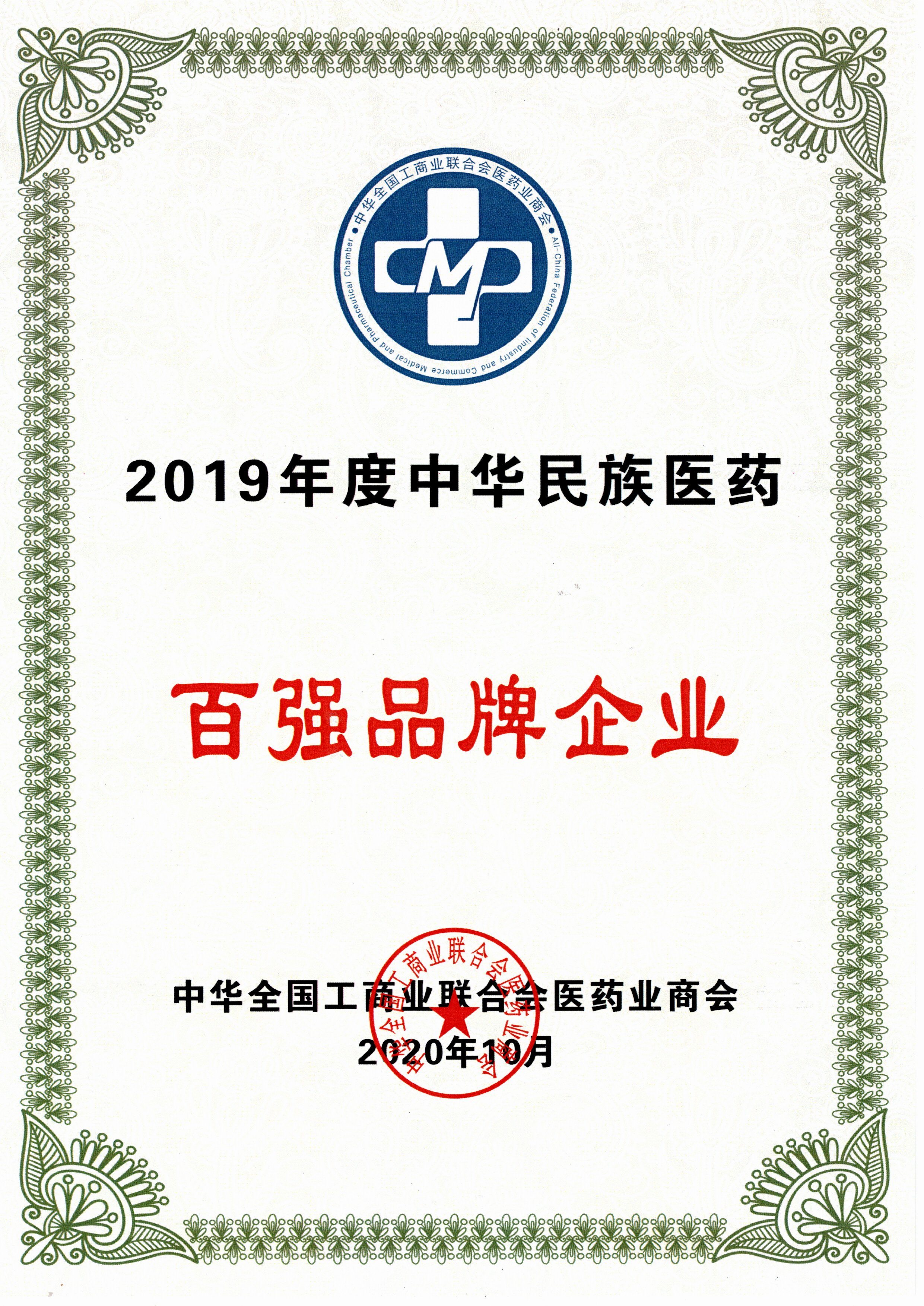 2019年度中華民族醫(yī)藥百強品牌企業(yè)