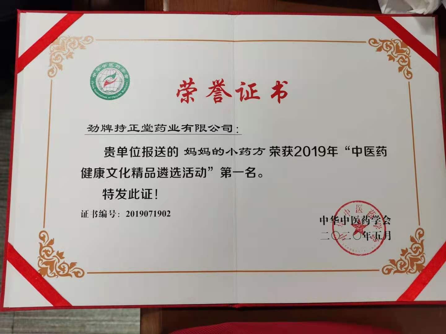 “媽媽的小藥方”中醫(yī)藥健康文化精品遴選活動第一名